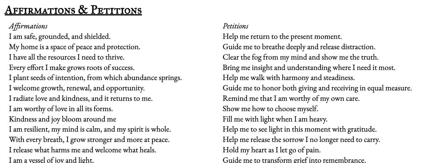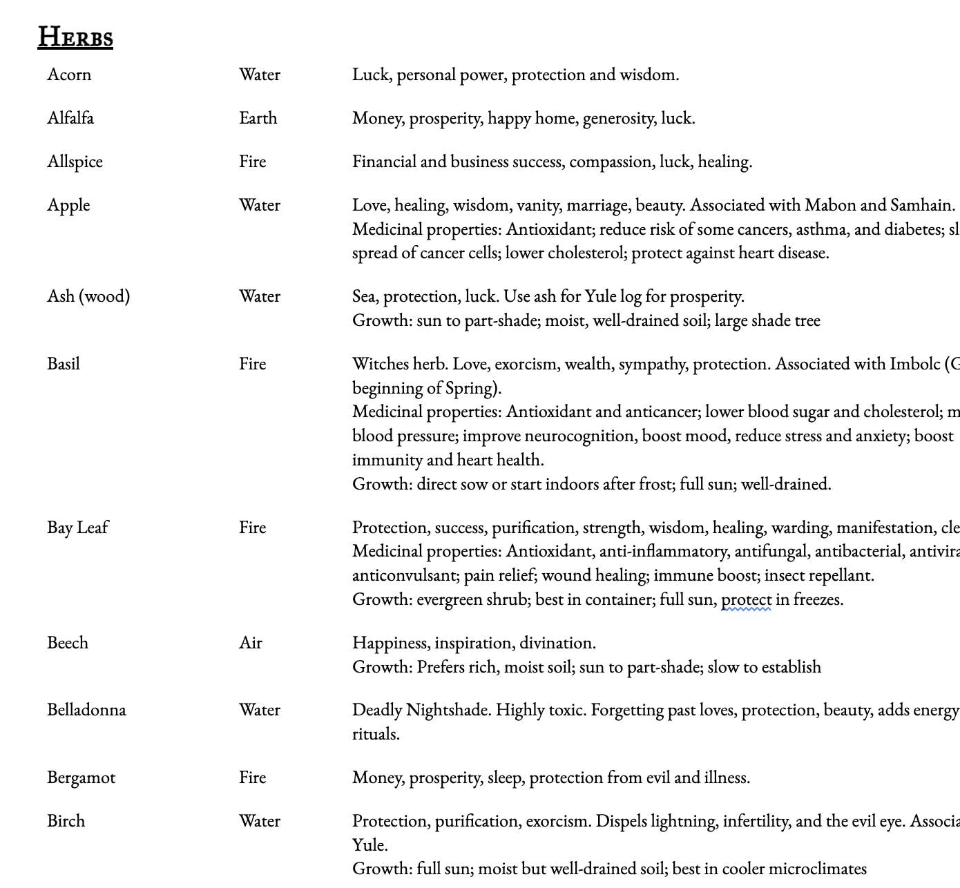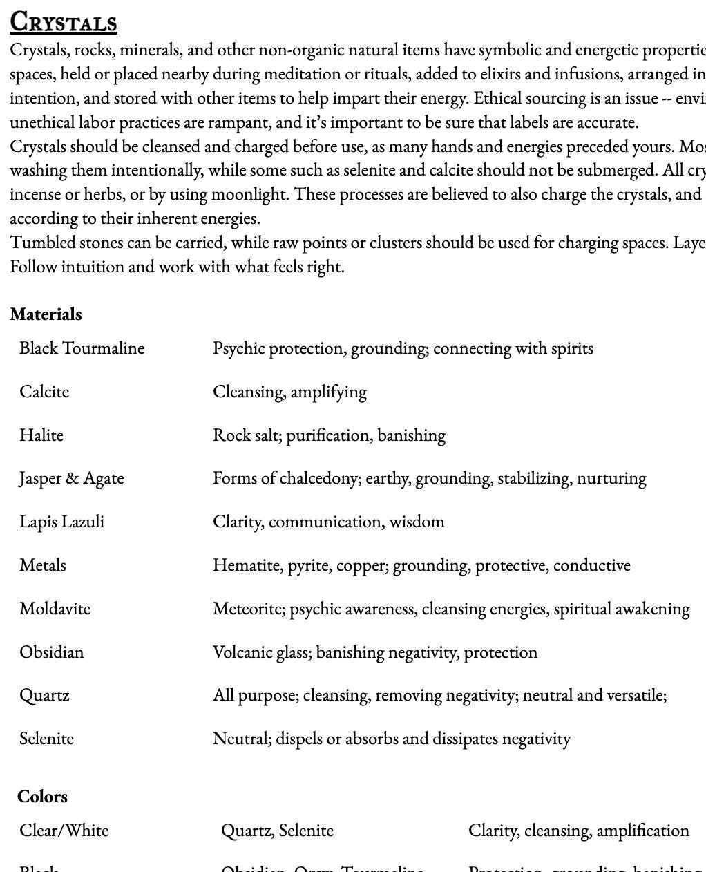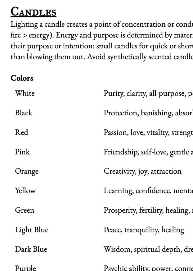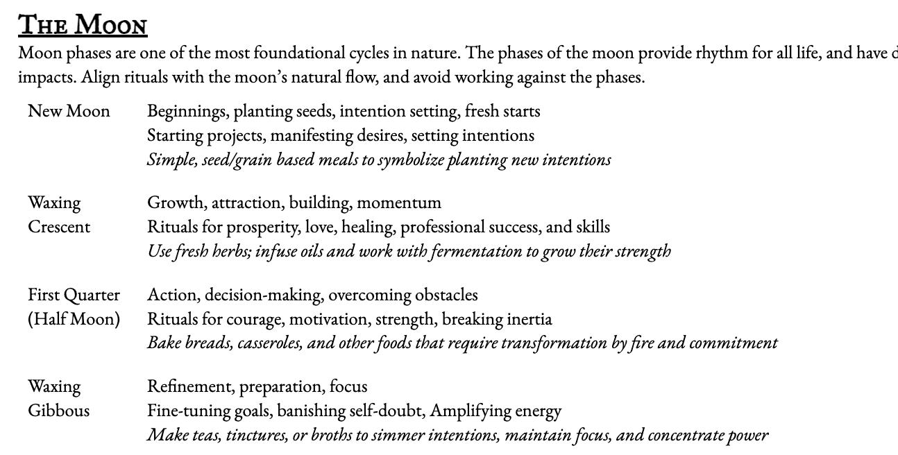 Norse Runes - Herbs - An Herbal Symbolism/Energetic Matrix - Kitchen Staples- Oils - Crystals - Candles - The Moon & The Seasons - Simple kitchen ritual ingredient lists - Sample Affirmations & Petitions - Common Deities